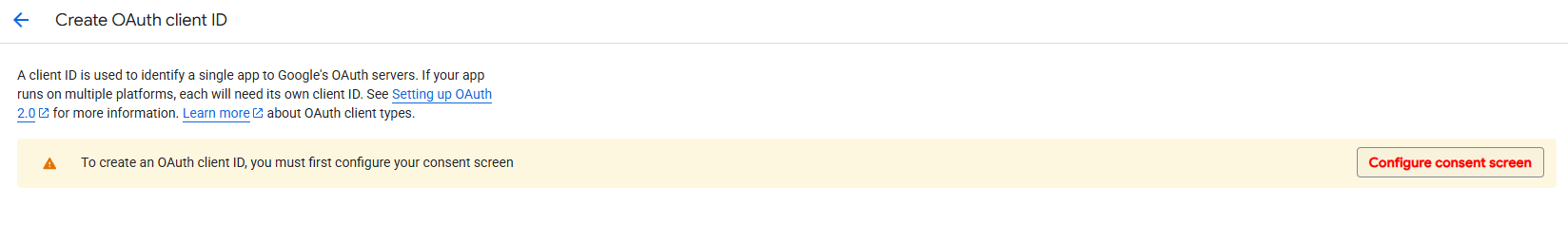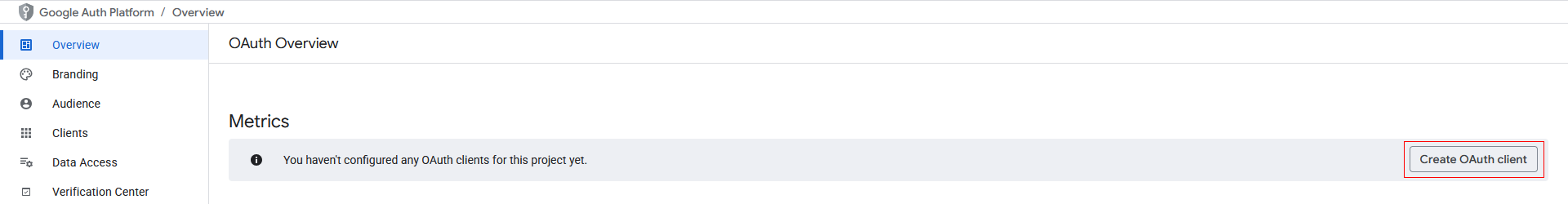 Createand it will take you back to the overview. Click onCreate OAuth client.