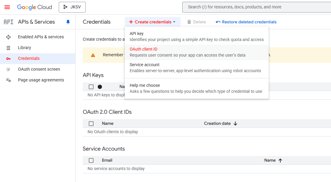 Createand you will end up at the final window for this step, download the JSON file containing the client info for JKSV.DANGER