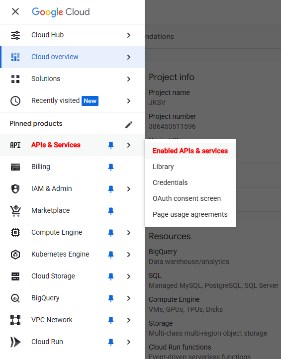 Go to Google Cloud Console and click