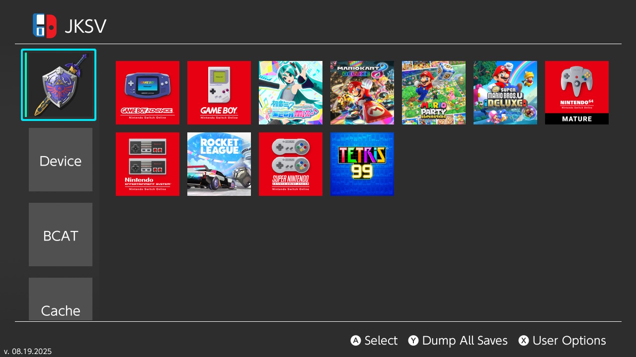 - Launch JKSV from the homebrew menu.